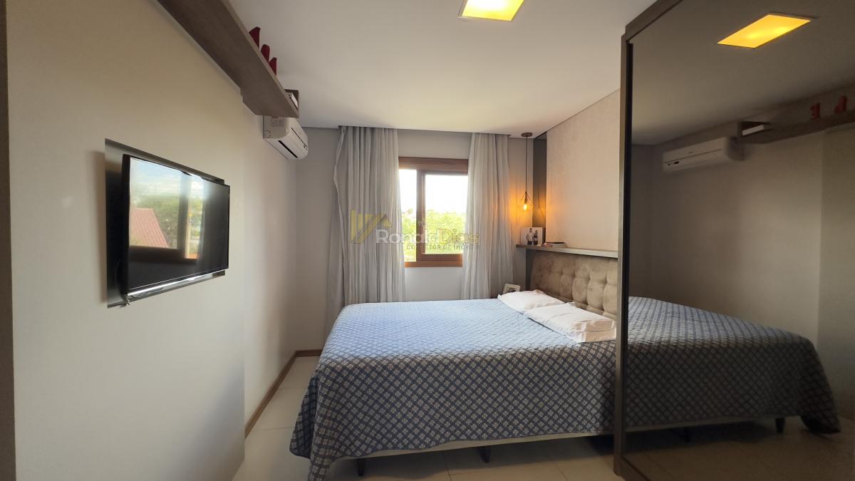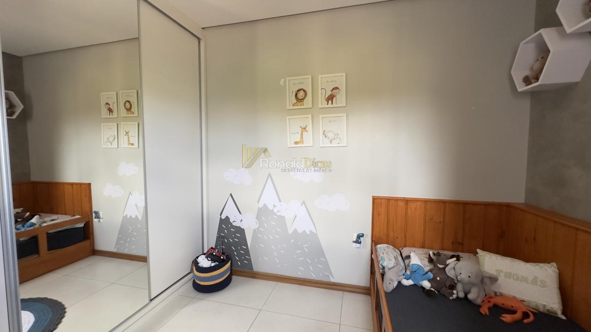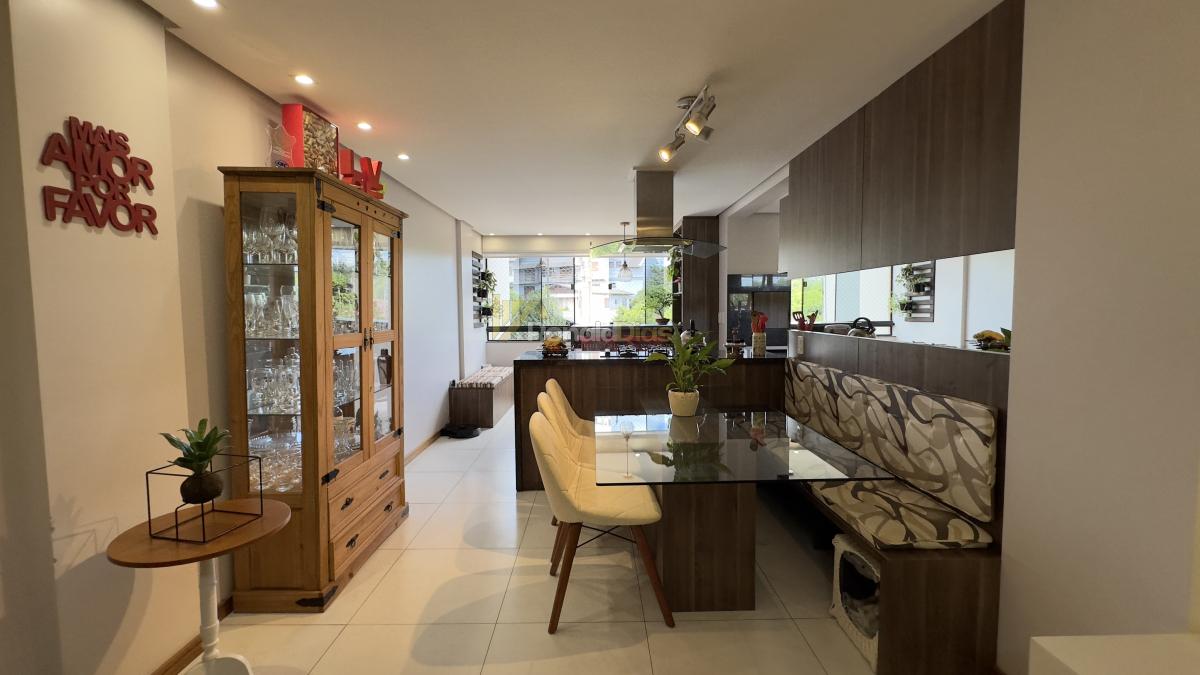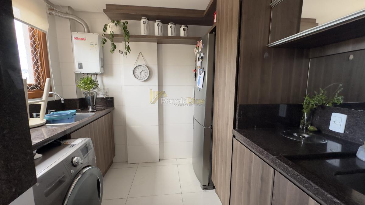 O imóvel conta com 2 dormitórios, banheiro social, sala de estar e jantar, cozinha com churrasqueira e varanda gourmet, área de serviço e 2 vagas de garagem.