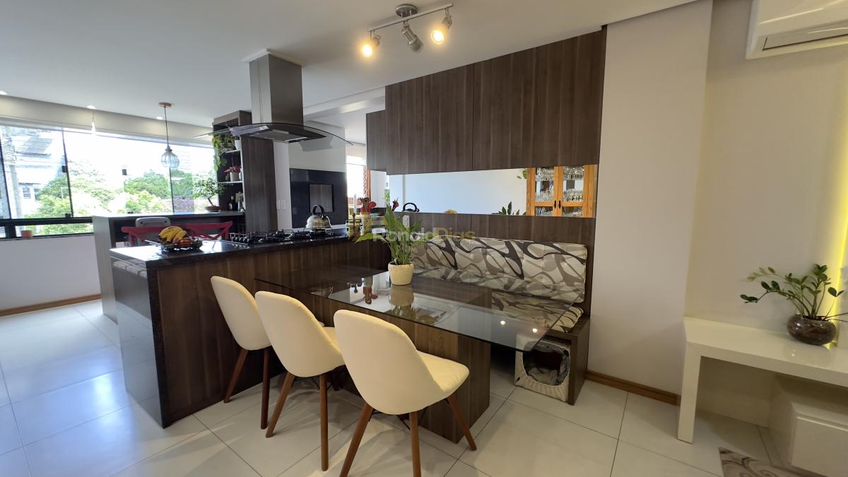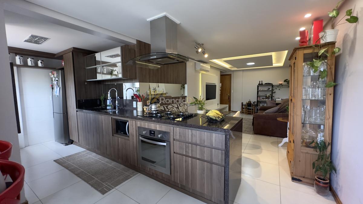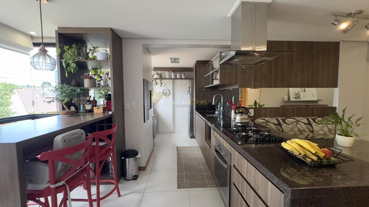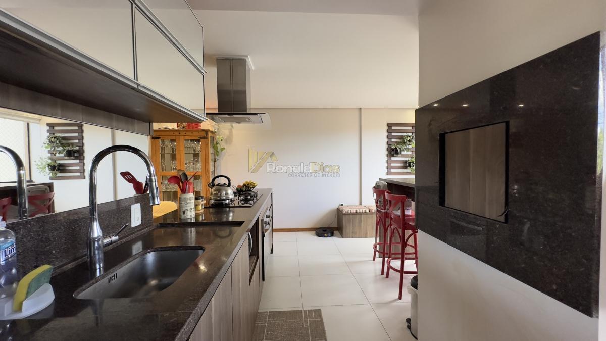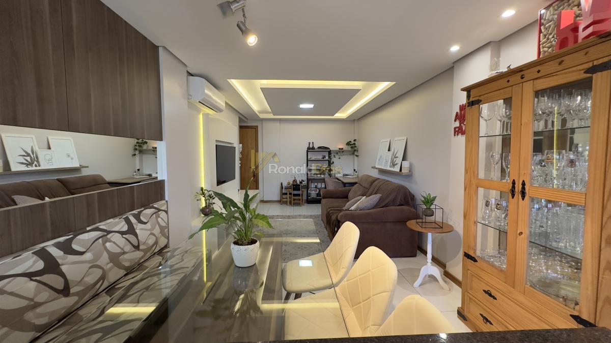 O imóvel conta com 2 dormitórios, banheiro social, sala de estar e jantar, cozinha com churrasqueira e varanda gourmet, área de serviço e 2 vagas de garagem.