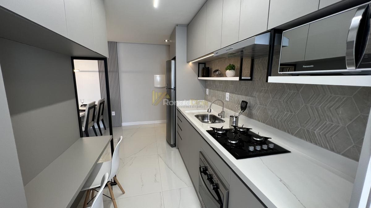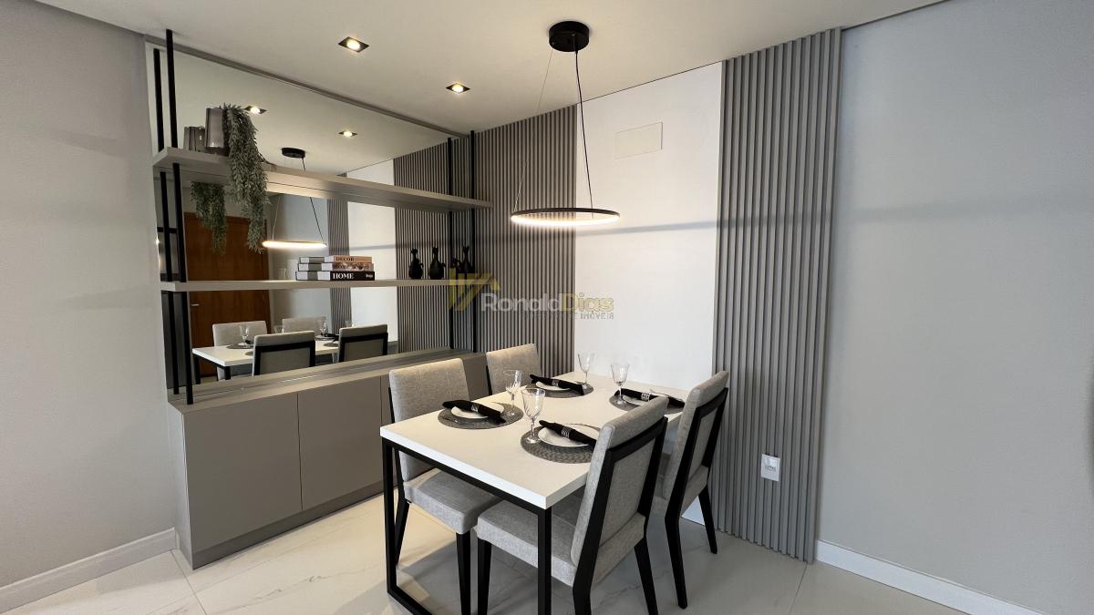 Apartamento mobiliado e decorado, composto por 2 dormitórios, um banheiro, sala de estar e jantar, cozinha, churrasqueira, área de serviço, vaga de garagem.